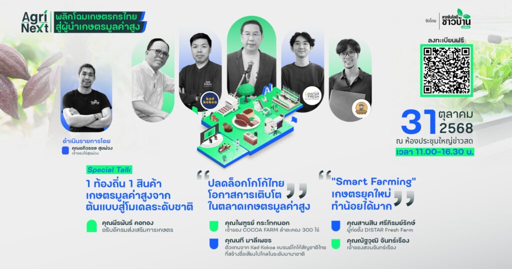 📣 เกษตรกร ผู้ประกอบการ นักธุรกิจหน้าใหม่! อัปเกรดการทำเกษตรสู่ “เกษตรมูลค่าสูง” ที่รวมทุกเคล็ดลับและโอกาสที่คุณต้องรู้ไว้ในงานเดียว! 31 ต.ค. 2568 นี้