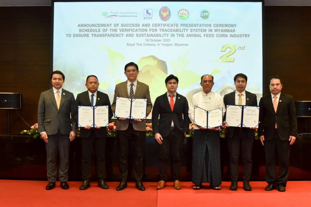 ในวันที่ 1 มกราคม 2569 พิธีดังกล่าวจัดขึ้น ณ สถานเอกอัครราชทูตไทย กรุงย่างกุ้ง โดยมีหน่วยงานสำคัญจากทั้งสองประเทศเข้าร่วมอย่างคับคั่ง ทั้งจากกระทรวงพาณิชย์ สำนักงาน GISTDA ของไทย สมาคม MCIA ของเมียนมา และภาคเอกชนผู้ประกอบการหลักในห่วงโซ่อุปทาน ได้แก่ CPP Fertilizer, Bangkok Produce Merchandising (BKP) และ Myanmar C.P. Livestock ซึ่งทั้ง 4 รายนี้ได้รับมอบ Traceability Recommendation Letter จาก Control Union เพื่อรับรองผลการดำเนินงานในระบบตรวจสอบย้อนกลับตลอดห่วงโซ่คุณค่าอย่างเป็นทางการ
