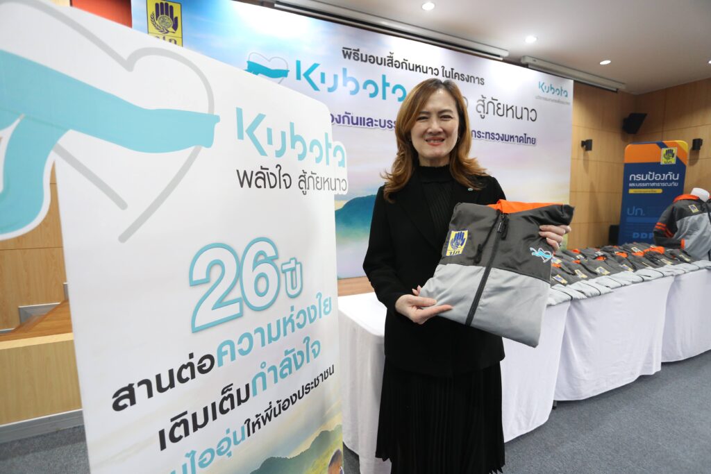 นางวราภรณ์ โอสถาพันธุ์ กรรมการรองผู้จัดการใหญ่อาวุโส บริษัทสยามคูโบต้าคอร์ปอเรชั่น จำกัด กล่าวว่า “การยืนหยัดอยู่เคียงข้างเกษตรกรไทย และภาคการเกษตรมากว่า 47 ปี ของสยามคูโบต้า เราไม่เพียงมุ่งมั่นพัฒนาเทคโนโลยีเครื่องจักรกลการเกษตรและนวัตกรรมการเกษตรเท่านั้น แต่ยังให้ความสำคัญกับการสร้างคุณค่าและรับผิดชอบสังคม “คูโบต้าพลังใจสู้ภัยหนาว” เป็นโครงการแห่งความภาคภูมิใจที่สะท้อนถึงเจตนารมณ์ของเราในการอยู่เคียงข้างประชาชน ร่วมแบ่งปันความอบอุ่น และสร้างกำลังใจให้กับผู้ที่ต้องเผชิญความหนาวเย็นในพื้นที่ห่างไกล โดยเฉพาะในปีนี้สยามคูโบต้าได้ร่วมมือกับกองทัพบก ในการมอบเสื้อกันหนาวในพื้นที่ภาคตะวันออกเฉียงเหนือได้แก่ จังหวัดชัยภูมิ และจังหวัดขอนแก่น และกรมป้องกันและบรรเทาสาธารณภัย ในพื้นที่ภาคเหนือได้แก่ จังหวัดพิษณุโลก และจังหวัดอุตรดิตถ์ ซึ่งเป็นหน่วยงานหลักของประเทศในการช่วยเหลือและบรรเทาความเดือดร้อนของประชาชน รวมถึงได้รับความร่วมมือจากหลายๆ หน่วยงานที่เกี่ยวข้อง อาทิ ร้านค้าผู้แทนจำหน่ายสยามคูโบต้า ได้แก่ อุตรดิตถ์ยนตรกิจ คูโบต้าบิ๊กยูพิษณุโลก คูโบต้าชัยภูมิ และสุวัฒน์แทรกเตอร์ ตลอดจนหน่วยงานราชการในจังหวัดและในพื้นที่จัดงานที่ให้ความร่วมมือกับในการพิจารณาพื้นที่เป้าหมาย เพื่อให้เสื้อกันหนาวได้ถูกลำเลียงสู่พี่น้องที่ได้รับความเดือดร้อนอย่างทั่วถึงและรวดเร็ว”