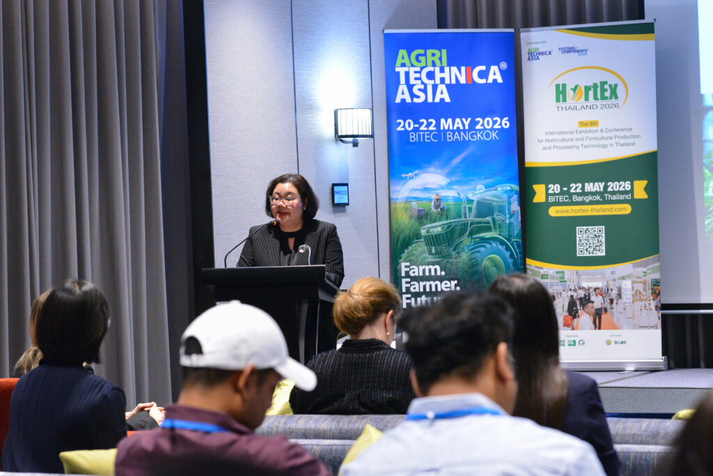 ดร. เมย์ กนกวรรณ โชติชัย หัวหน้ากลุ่มฝ่ายกิจการสาธารณะของ East-West Seed แบ่งประสบการณ์การเป็นคณะกรรมการตัดสินรางวัล “Women in Agriculture” ปี 2568 ที่เยอรมนี และย้ำถึงความสำคัญของ Future Farmer Award ในฐานะผลงานหลักของ AGRITECHNICA ASIA and HortEx 2026  ที่มุ่งเน้นให้คนรุ่นใหม่มองเห็นว่าอาชีพเกษตรกรรมคืออาชีพที่เต็มไปด้วยเทคโนโลยีและศักดิ์ศรี นอกจากนี้ East-West Seed ยังร่วมมือกับ THASTA และ TVRC ในการจัดเซสชั่นด้านเมล็ดพันธุ์ใน HortEx 2026