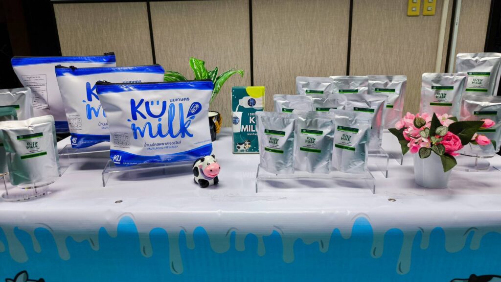 เสริมพรีไบโอติก และกลิ่นรสจากยีสต์ออโตไลเสท มุ่งแก้ปัญหาการย่อยนมในสัตว์เลี้ยงและวิกฤตน้ำนมดิบล้นตลาดพร้อมเผยผลวิจัยทางคลินิกที่ยืนยันความปลอดภัยสูงสุดเมื่อเทียบกับนมโคและนมแพะทั่วไป โดยมีดร.ดำรงค์ ศรีพระราม รักษาการแทนอธิการบดีมหาวิทยาลัยเกษตรศาสตร์ เป็นประธานแถลงข่าว พร้อมกล่าวว่า จากจุดเริ่มต้นในปี พ.ศ. 2495 ที่แม่โค 6 ตัวแรกเดินทางมาถึงมก.โดยการวางรากฐานของ ศาสตราจารย์ ม.ร.ว. ชวนิศนดากร วรวรรณ(อาจารย์หม่อม) สู่การเป็นโรงนมพาสเจอร์ไรซ์แห่งแรกของไทย วันนี้ “ศูนย์ผลิตภัณฑ์นม มก.” ได้นำมรดกล้ำค่าและนำความภูมิใจที่อยู่เคียงข้างสังคมไทยมาทุกวิกฤต มาต่อยอดสู่นวัตกรรม”KU Lactova Milk” ผลิตภัณฑ์นมระดับพรีเมียมเพื่อสัตว์เลี้ยง สุขภาพดี และ เพื่อเกษตรกรโคนมมีรายได้อย่างมั่นคง นับเป็นการสร้างมูลค่าเพิ่มให้น้ำนมดิบจากเกษตรกรไทย และตอกย้ำความเป็นผู้นำด้านนวัตกรรมเกษตรอาหารของมหาวิทยาลัยเกษตรศาสตร์